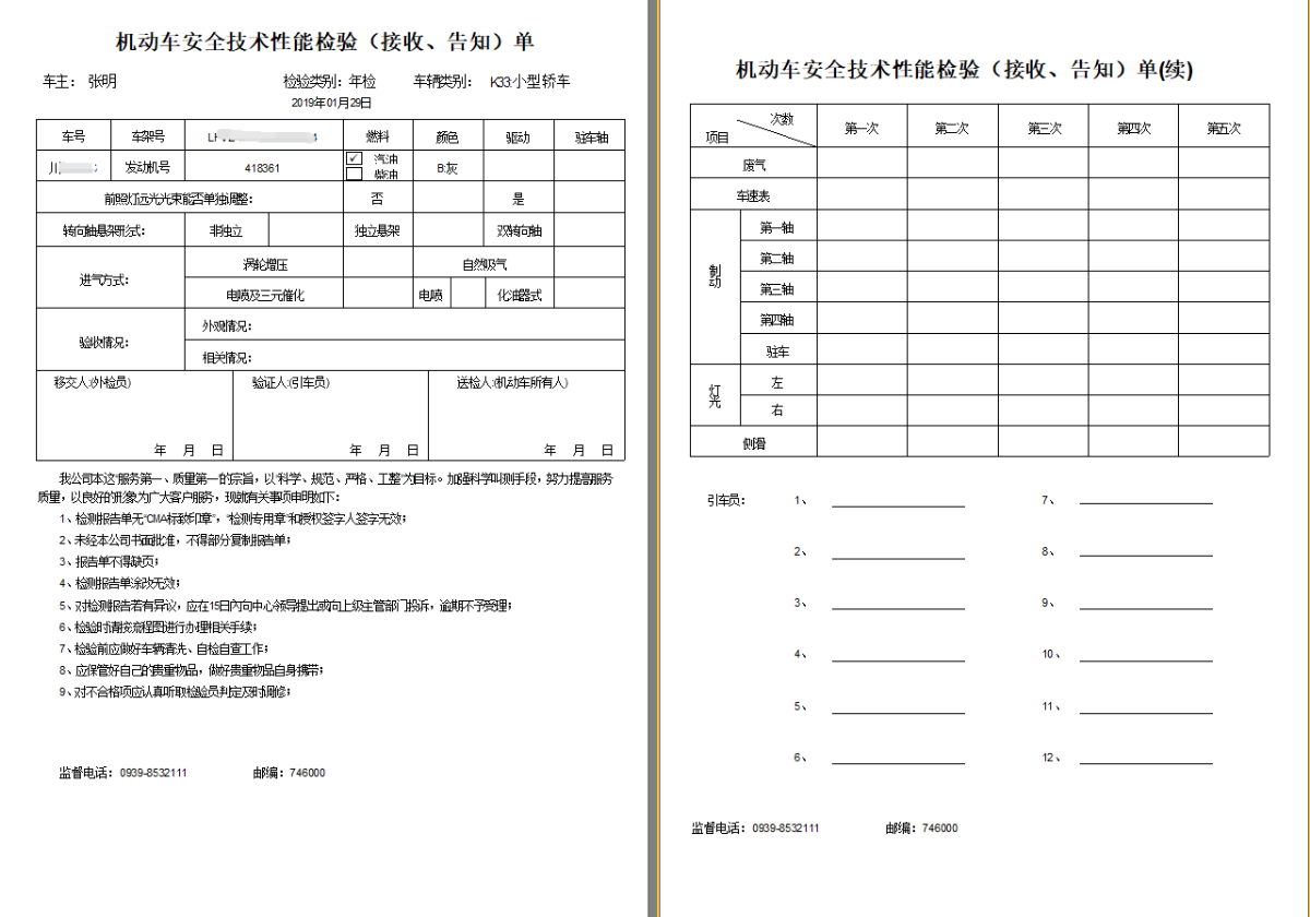 某机动车检测机构检测单